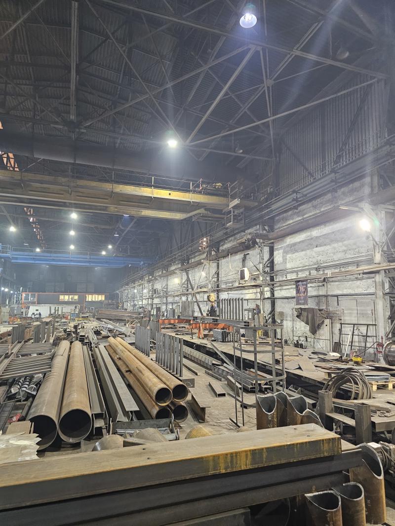 - Мощность завода составляет 450 тонн металлоконструкций в месяц.